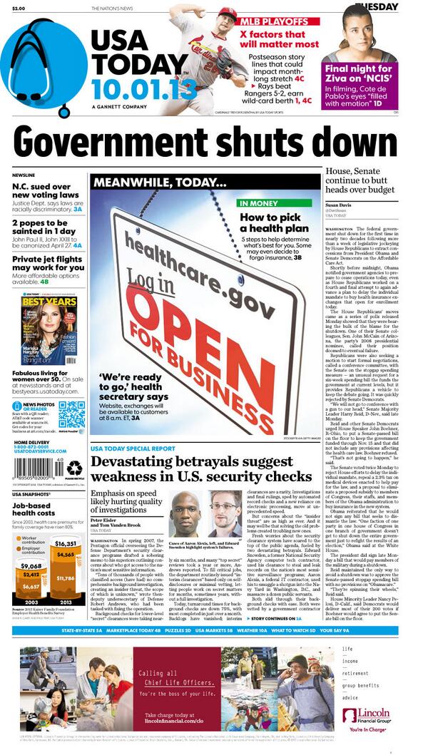 “@USATODAY: Government shuts down while health care exchanges open for business. #shutdown #obamacare #Tuesday pic.twitter.com/UbxYpDr93x”