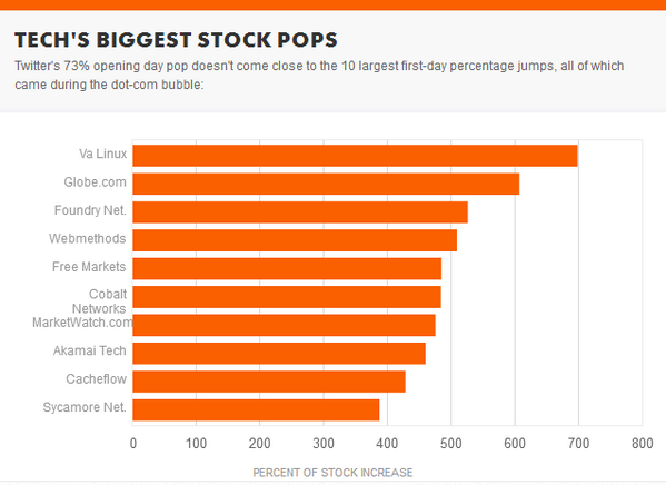How Twitter's stock increase today compares to the 10 biggest first-day jumps (hint: it doesn't):pic.twitter.com/SIuZdtlWD2