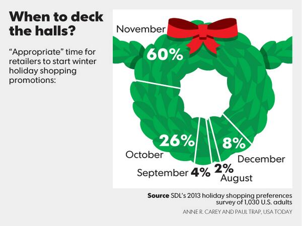 Whatever the timing it'll be too soon RT@USATODAY: When should retailers start decking their halls? #snapshotspic.twitter.com/dzRV4lLOms