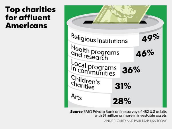 @USATODAY I donate to religious charities that help spread the word of Christ & helps people from children to adults but mostly children.