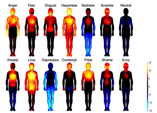 Very cool RT @USATODAY Emotions directly linked to sensations in specific parts of our bodies: http://usat.ly/1fYC2vS pic.twitter.com/DFCFvAAEK4