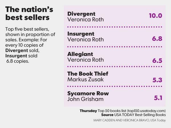 “@USATODAY: "Divergent" by Veronica Roth tops the nation's best sellers list. #snapshots pic.twitter.com/h9pbFnwQJQ” @DiegoRaue @glendadehoyos