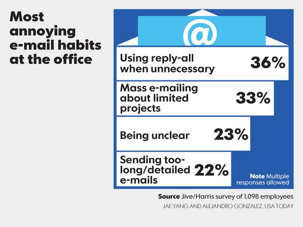 “@USATODAY: What is your work e-mail pet peeve? #snapshots pic.twitter.com/QJirr1Ui9c” <--Reply all is the WORST!!