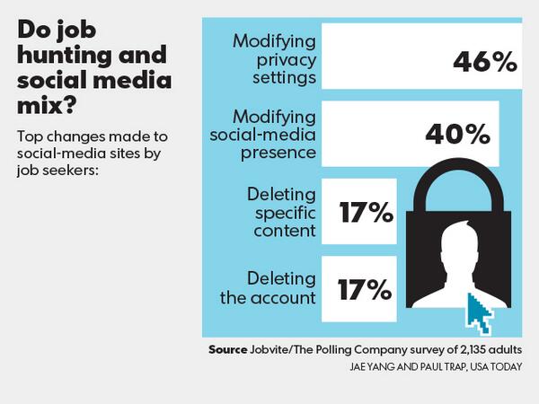 17% of job seekers hit DELETE! MT @USATODAY: When looking for a job, do you secure your social media?pic.twitter.com/26wVg0FMMK