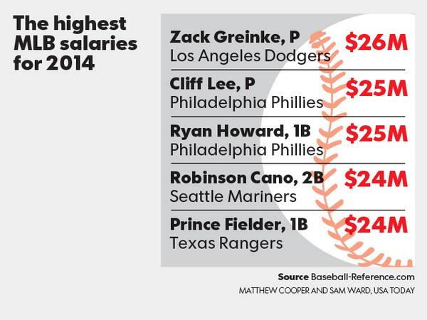 “@USATODAY: The highest-paid MLB player, pitcher Zack Greinke, will make $26 million this year. pic.twitter.com/lr4ma9Ehyp” Cliff Lee, eh?