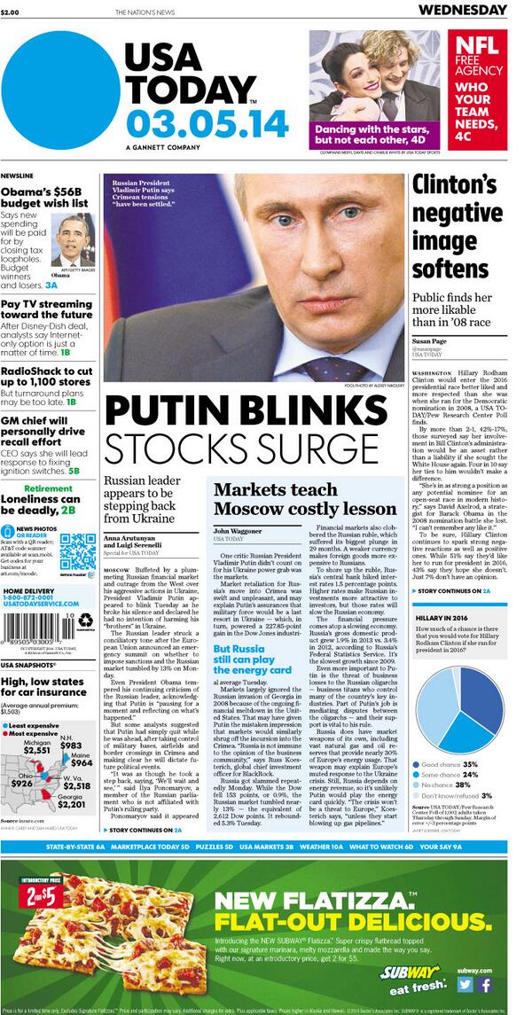 @USATODAY IS THIS A JOKE ARTICLE BOUT' HILLARY IS USA TODAY REALLY THAT DESPERATE FOR "FRONT PAGE NEWS." WARREN BUFFET WAS ON SQUAWK".Thanks. Twitter will use this to make your timeline better. UndoUndo