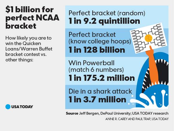 Pretty interesting RT @USATODAY: The changes of randomly picking a perfect NCAA bracket? 1 in 9.2 quintillion.pic.twitter.com/6sy65CRqFR