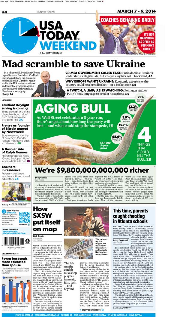 #SneakPeek at Friday's paper: Scramble to save Ukraine. The aging bull market. How #SXSW put itself on the map.pic.twitter.com/TZzwXQrelZ