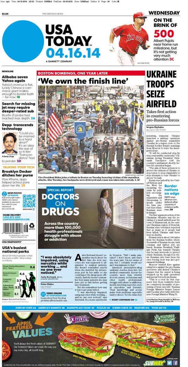 Today's paper: #Boston even stronger. Ukraine takes action against pro-Russian forces.pic.twitter.com/9IGBPIwnkt