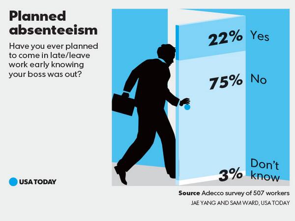 the 3% tho“@USATODAY Really? Just 22% say they've left early or come in late when they knew their boss wasn't around:pic.twitter.com/VT64Wx2h2y