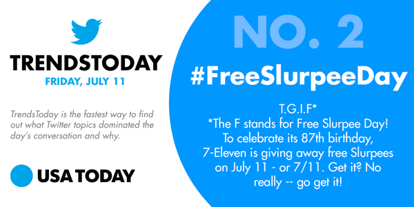 If you don't already know about #FreeSlurpeeDay, then Trends Today is about to become your best friend:pic.twitter.com/imCfnUH2Ua