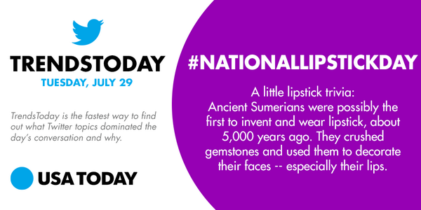 @USATODAY: ICYMI Twitter is here to remind you it's#NationalLipstickDay pic.twitter.com/qSfhyY07Mr” I have quite the collection