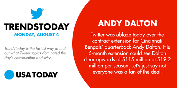 @USATODAY Gotta get that agent of his to negotiate my next raise!#GetMoney#CincinnatiFail Andy DaltonThanks. Twitter will use this to make your timeline better. UndoUndo
