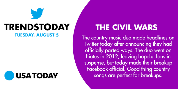 @USATODAY: After 2 years of hiatus, The Civil Wars said that the duo's split would be permanent." NOOOOO