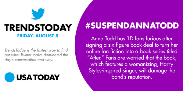 “@USATODAY: Only a carrot would mess with Harry. One Directioners have #SuspendAnnaTodd trending worldwide pic.twitter.com/l4zJUXgFhu” YASS