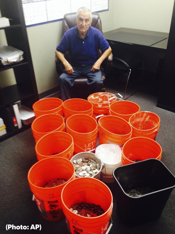 “@USATODAY: Man gets $21,000 of settlement money in "over 16 buckets" of coins: http://usat.ly/1ks9r8Q pic.twitter.com/CqWmRkA8Ux”
