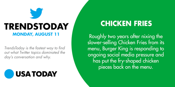 Hard-hitting. Urgent. American news MT @USATODAY's TrendsToday finds out what Twitter topics dominate http://usat.ly/1oq1a6l  #ChickenFries
