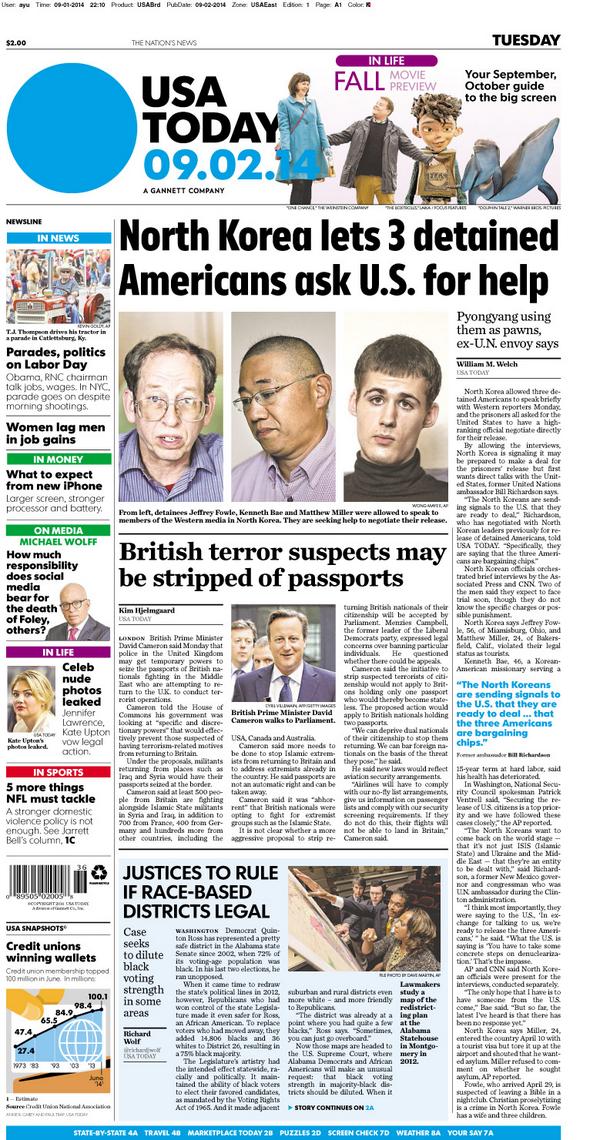 On today's #frontpage -- Americans held in N. Korea seek help. British PM wants to strip terror suspects of passportspic.twitter.com/HHL94M2aQz