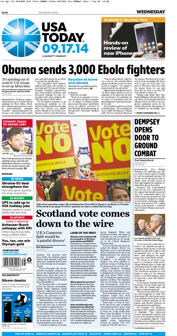 MT “@USATODAY: #SneakPeek at Wednesday's paper ://twitter.com/USATODAY/status/512087523330629632/photo/1” Splashed across USA Today.
