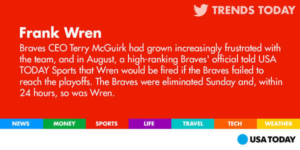 Wow. “@USATODAY: Well, that was fast. Frank Wren is no longer general manager of the Braves: http://usat.ly/1qnsHQM pic.twitter.com/rTiY6adz9Y”