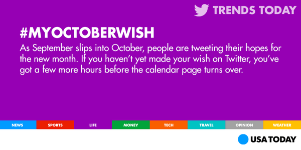 @USATODAY: #MyOctoberWish is that our hectic lives will calm down just enough so we can all breathe, relax and enjoy the fall weather!