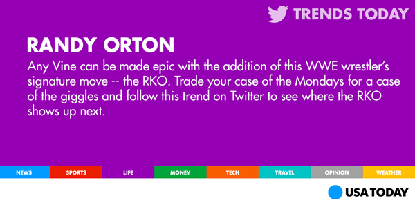 “@USATODAY: Randy Orton plays soccer? #RKOVine http://usat.ly/1sCbiLd pic.twitter.com/bHnqwngLN3” my baby is trending !