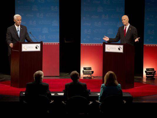 @JoeMGoldner@USATODAY Crist ALWAYS has fan near when he speaks/added note to "rules"/Fraudster Rick Scott violated Medicare/Medicaid rules -