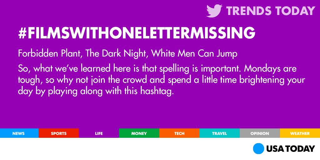 @USATODAY Godfellas, All The Right Movies, Wack to the Future, Gardens of Stoned, The Asocial Network, School Dazed, Top Fun, Night ShaftThanks. Twitter will use this to make your timeline better. UndoUndo