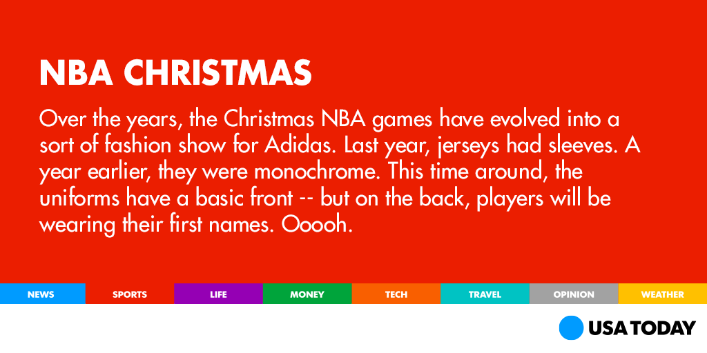 This year’s NBA Christmas jerseys are like a mullet: Business in the front, party in the back. http://usat.ly/1GXOtXj pic.twitter.com/RzJNqRGM6N