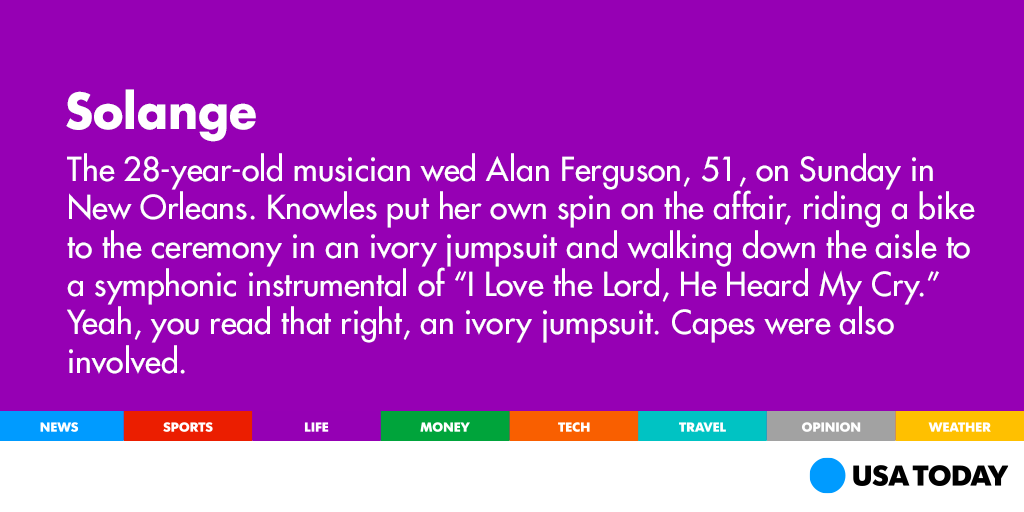 “@USATODAY: Solange Knowles is a single lady no longer! http://usat.ly/1yML8EG pic.twitter.com/OYtDm1lKzy”