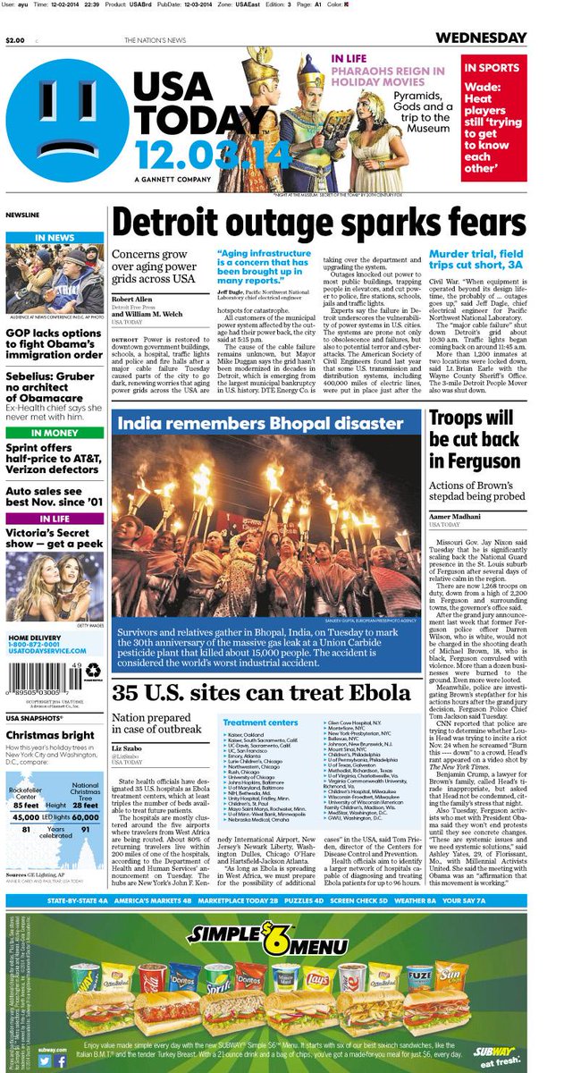 Today's #frontpage: #Detroit outage sparks worry. Remembering #Bhopal disaster. Guard troops cut back in #Fergusonpic.twitter.com/SzdoCXXmlK