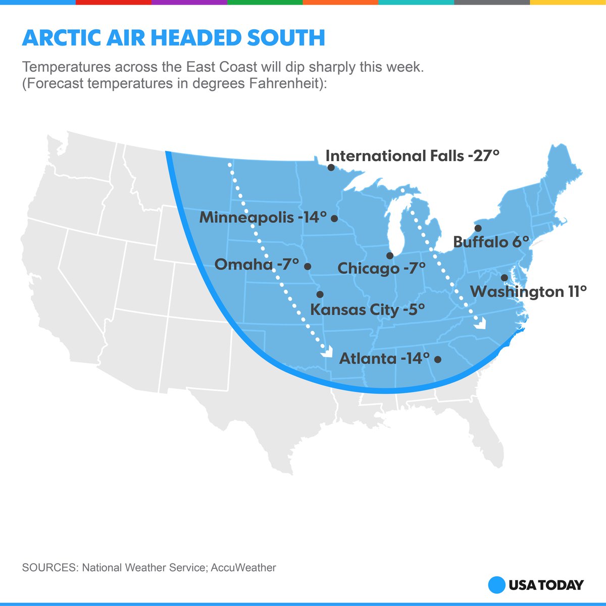 @USATODAY Corrected graphic (fixes Atlanta temperature) on the arctic chill:pic.twitter.com/Ecg9pEkrLj