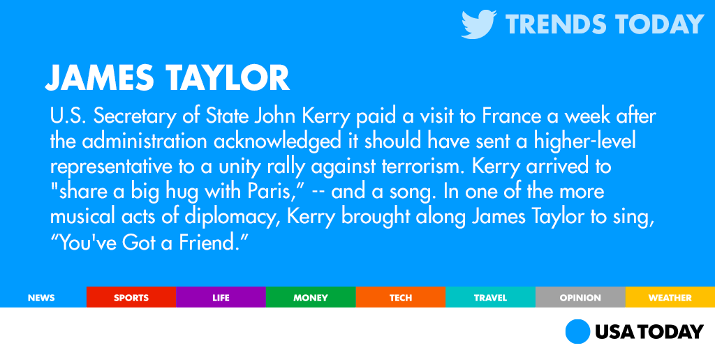 @USATODAY We brought James Taylor huh? That's like bringing a clown to a funeral.Thanks. Twitter will use this to make your timeline better. UndoUndo