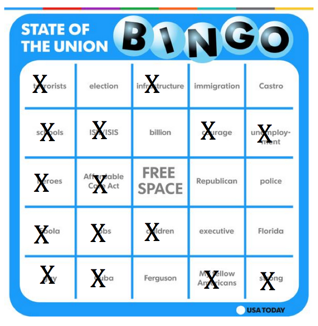 @USATODAY:Want to make State of Union viewing more fun? Play the#SOTU bingo game: http://usat.ly/1sVXoES pic.twitter.com/qIzDIIX3Jv”