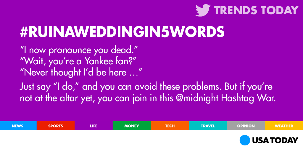 @USATODAY "The Baby is not yours" would#ruinaweddingin5wordsThanks. Twitter will use this to make your timeline better. UndoUndo