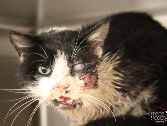@USATODAY poor kitty so sad breaks my heart should of taken the cat to the vet dumb people .I love cats