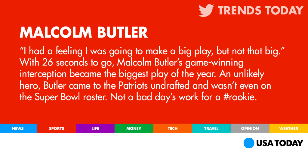 @USATODAY: Malcolm Butler is a#SuperBowl hero: http://usat.ly/1z6AjAk pic.twitter.com/3ybX56ksoL”@PatriciaHeaton#UWA#Inspiring