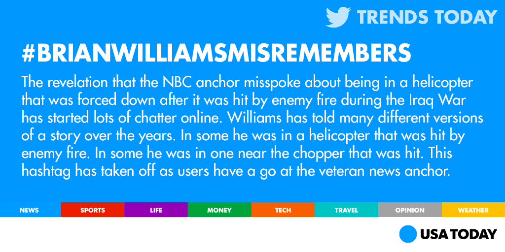 @USATODAY: Awkward doesn’t begin to describe it:#BrianWilliamsMisremembers http://usat.ly/1zUsFLu pic.twitter.com/XHyzR3kmNU”lol