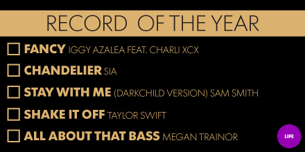@taylorswift13, @samsmithworld and @IGGYAZALEA vie for record of the year. All great, but who'll take it? #GRAMMYspic.twitter.com/218Hp98u5L