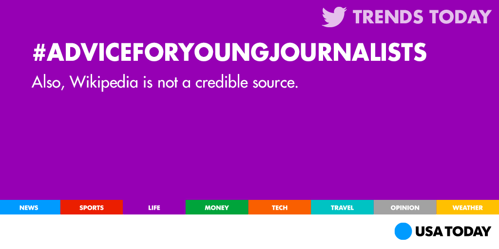 “@USATODAY: #AdviceForYoungJournalists: Be Smarter. Faster. More Colorful. pic.twitter.com/CeGrPqZvON” me How about more accurate, objective!!