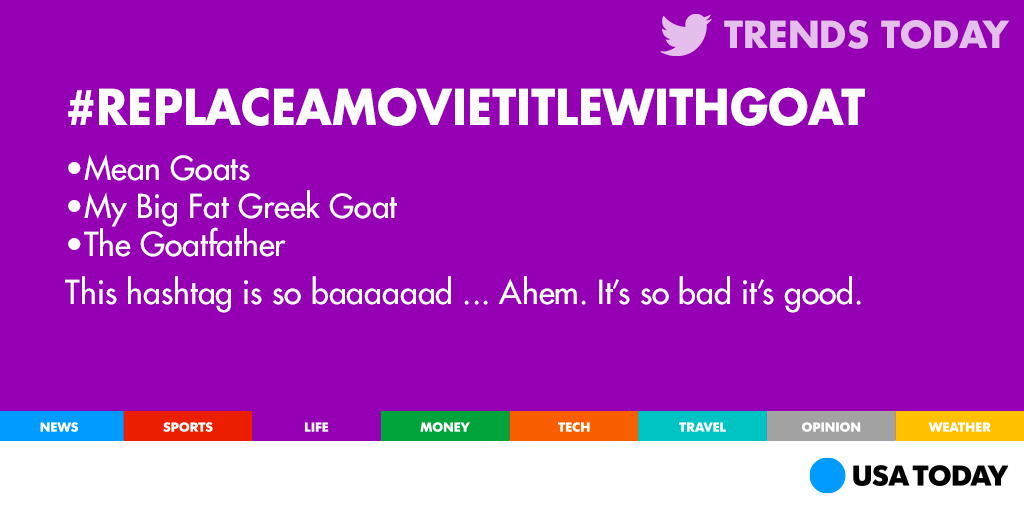 “@USATODAY: This hashtag -- #ReplaceAMovieTitleWithGoat -- is still happening. :) pic.twitter.com/qQxCoj4KD6” @LABRUE !!