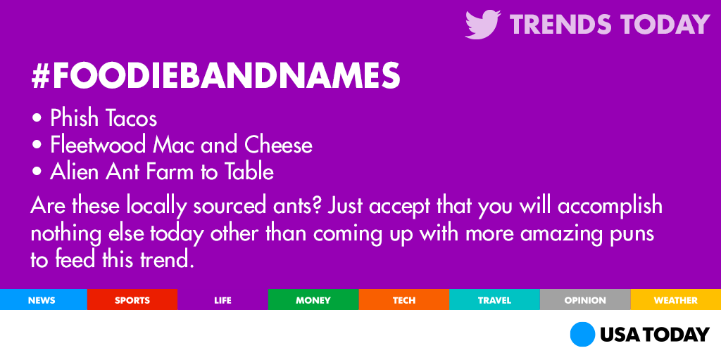 No. RT @usatoday: We would totally *jam* out to any of these bands. (See what we did there? #PUNS!) #FoodieBandNamepic.twitter.com/WE8OU4MiZM