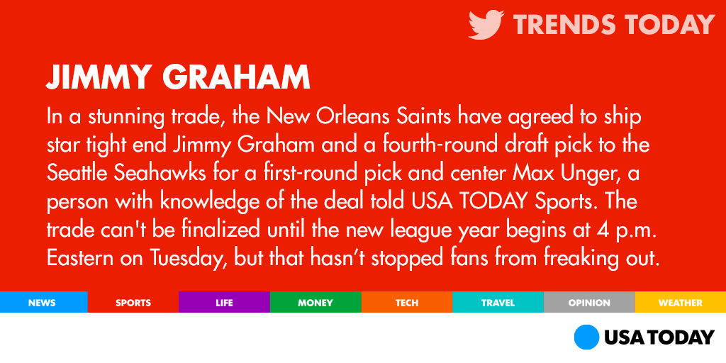 @USATODAY: Wait, what? Jimmy Graham could be leaving the Saints: http://usat.ly/1wuhHeu pic.twitter.com/hP9UO2l5fp”
