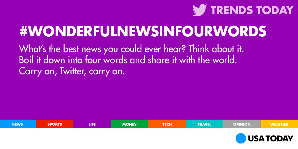 @USATODAY You will be okay!!#WonderfulNewsInFourWordsThanks. Twitter will use this to make your timeline better. UndoUndo