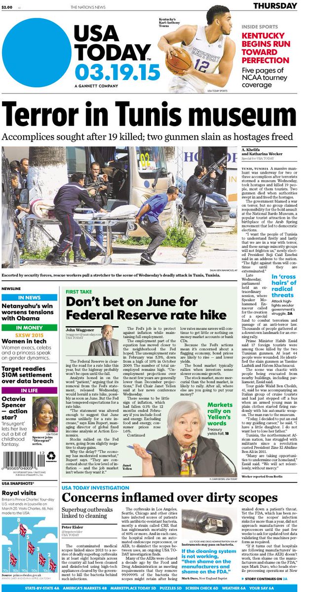 Today's #frontpage: Terror strikes #Tunisia, 19 killed. #Fed rate hike likely in fall. Women in tech at #SXSW.pic.twitter.com/tCmkKVdPRd