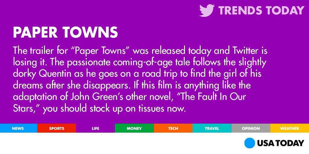 “@USATODAY: Get lost. Get found. The full #PaperTowns trailer is out! http://usat.ly/1EyAllz pic.twitter.com/OXsTRZEyrS” @majken_amalie