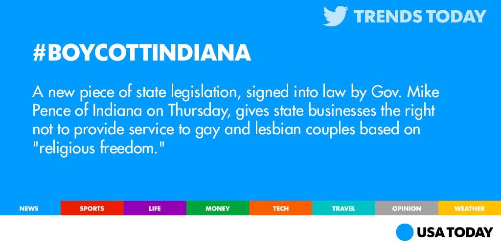 “@USATODAY: Twitter is up in arms over a new Indiana law: #BoycottIndiana http://usat.ly/1HYNAfT pic.twitter.com/kYRZY2sttD”