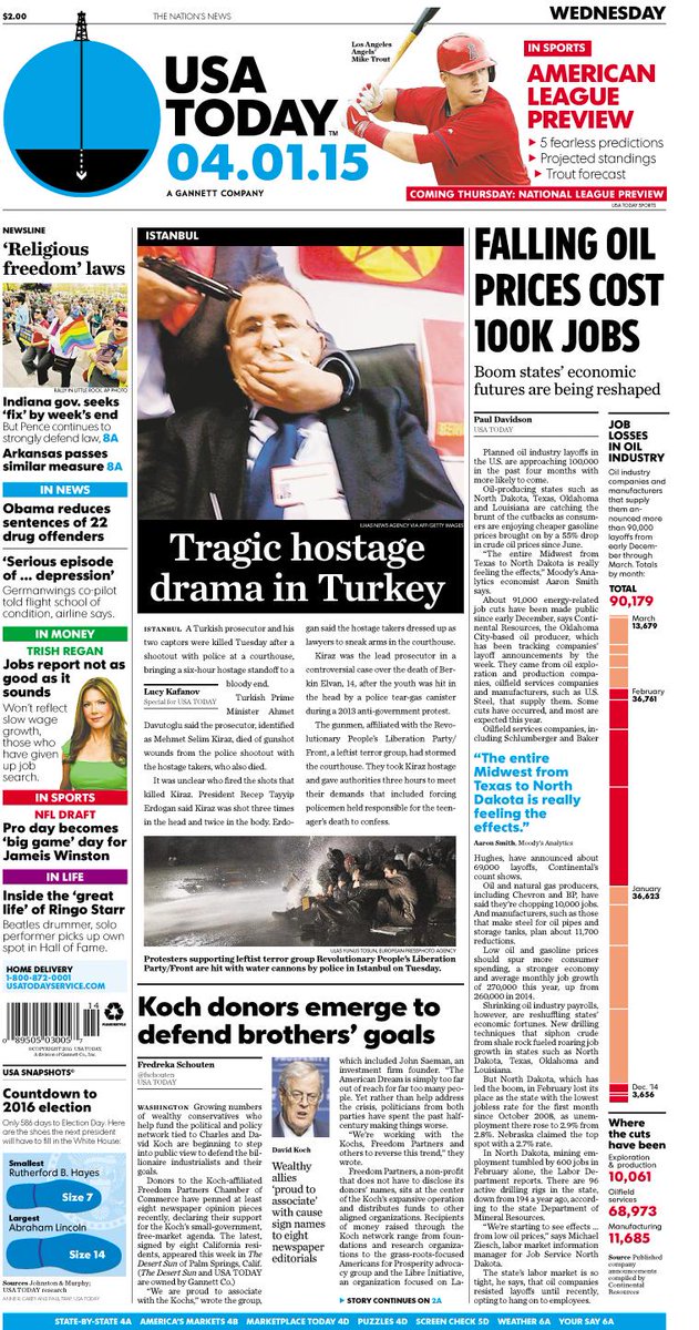 “@USATODAY: Today's #frontpage: Tragic end to Turkish hostage situation. #Oil industry sheds nearly 100K jobs. pic.twitter.com/65x3NuuRWI”