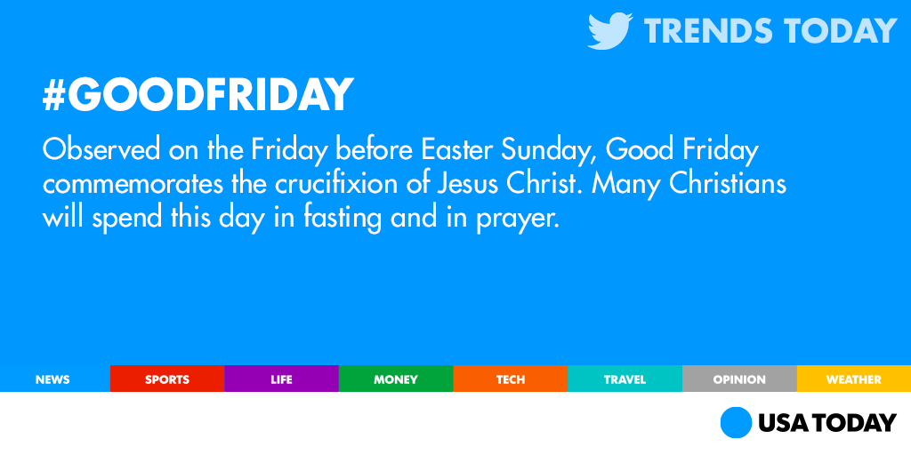 @USATODAY: The Twittersphere is observing#GoodFriday: http://usat.ly/1BWLyIE pic.twitter.com/U9pNnUEM3N”
