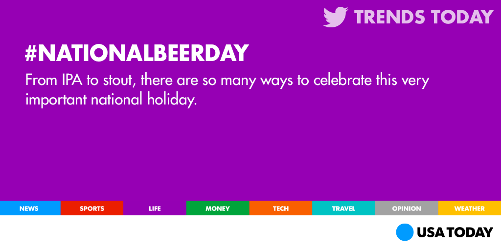 . @USATODAY Proud supporters of BEER - the original social network. #NationalBeerDay #DrinkBeerpic.twitter.com/APmXiR1yTg